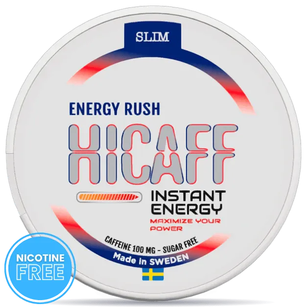 Hicaff Energy Rush Slim – Nicotine-Free Caffeine Pouches (100 mg), Discreet Slim Fit