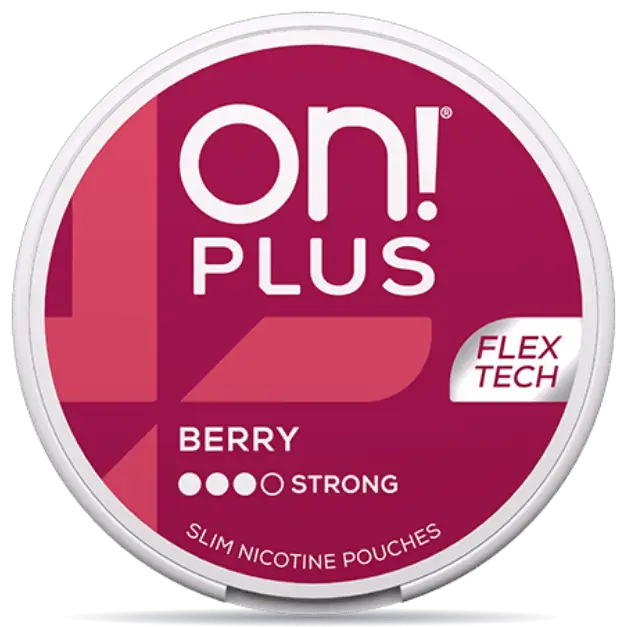 On! 9 mg Plus Berry serves up a bold mixed-berry flavor with a confident 9 mg nicotine per pouch (≈12.6 mg/g). These all-white, tobacco-free portions come in a discreet slim format and use a flexible, form-fitting pouch design for comfort and steady release. Made by Helix Sweden.