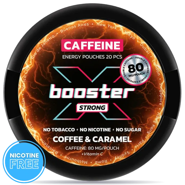 X-Booster Coffee & Caramel pairs rich roasted coffee with a soft caramel finish—then backs it up with a clean 80 mg caffeine hit. Zero nicotine, zero tobacco, zero sugar crash. Just fast focus in a slim, discreet pouch.